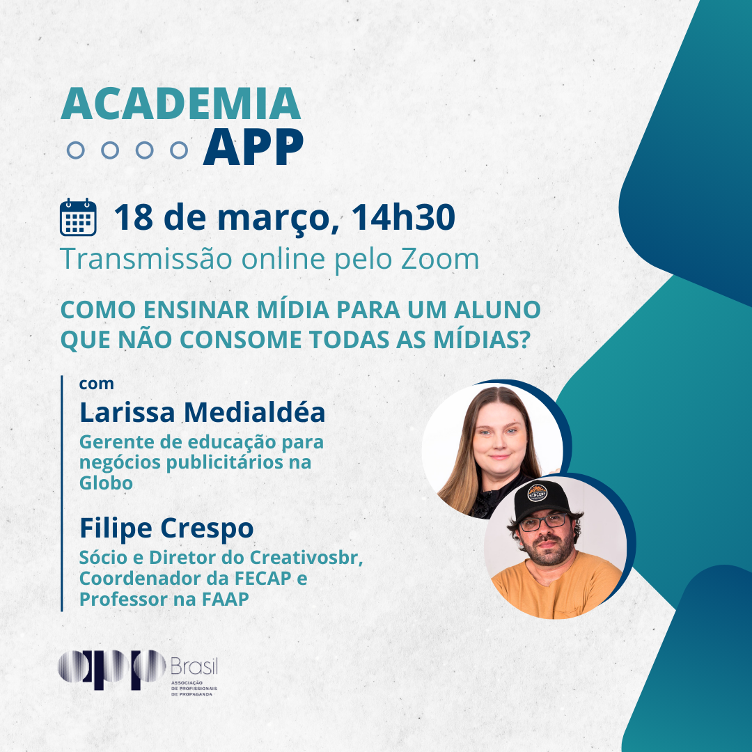 APP Brasil, entidade que apoia e estimula as atividades da comunicação e auxilia no aperfeiçoamento profissional e acadêmico, realiza mais uma edição da Academia APP, evento gratuito voltado para professores e coordenadores de comunicação, com o objetivo de promover discussões de temas atuais do mercado de publicitário brasileiro. O objetivo do evento é proporcionar troca […]