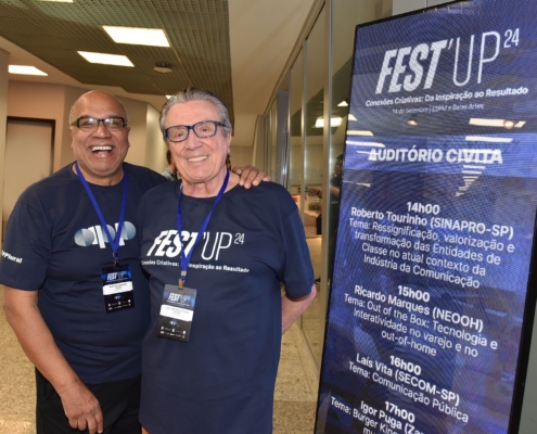 No dia 20 de setembro, grandes nomes do mercado estarão novamente reunidos nas universidades ESPM e Belas Artes, em São Paulo, para trocar ideias, compartilhar experiências reais e inspirar estudantes de todo o país. Tudo isso com uma estrutura e curadoria de conteúdo ainda mais envolvente e atualizada do que nos últimos anos. Será um dia inteiro de aprendizado na prática, troca de insights e muito networking com quem faz a diferença na comunicação. Se você quer se atualizar, ampliar suas conexões e dar um passo importante na sua trajetória profissional, o Fest’UP é o lugar certo.