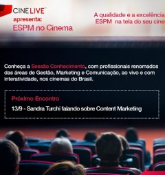 Atrair o seu público-alvo com conteúdo digital relevante é um desafio diário? Na sessão “Content Marketing” do projeto ESPM no Cinema você poderá tirar dúvidas e aprender muito mais sobre técnicas de atração, retenção e conversão. A apresentação está marcada para o dia 13 de setembro, às 20h, em cinemas de todo o Brasil. O projeto ESPM no Cinema é inédito e terá a duração de quatro meses – de agosto a novembro de 2016 –, com exibições agendadas para todas as terças-feiras.