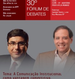 30º Fórum de Debates “A Comunicação Institucional como vantagem competitiva” Convidados Luiz Carlos Dutra Vice-presidente corporativo de relações institucionais da Votorantim desde 2012. Foi vice-presidente de Assuntos Corporativos da Unilever para América Latina entre 2004 e 2012. Executivo experiente, com passagens por Dow Química e Johnson & Johnson, Luiz Dutra é copresidente do Conselho da […]
